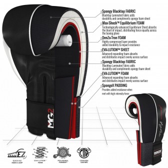 Guantes de boxeo de cuero en color negro/blanco de la marca RDX
