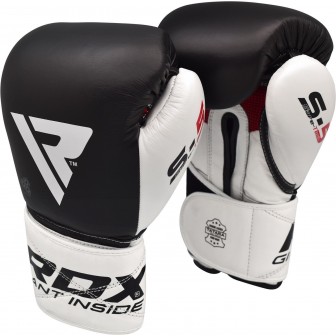 Guantes de boxeo de cuero en color negro/blanco de la marca RDX